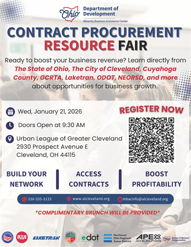 Ready to boost your business revenue? Learn directly from The State of Ohio, City of Cleveland, Cuyahoga County, GCRTA, Laketran, ODOT, NEORSD, and more about opportunities for partnership and business growth.